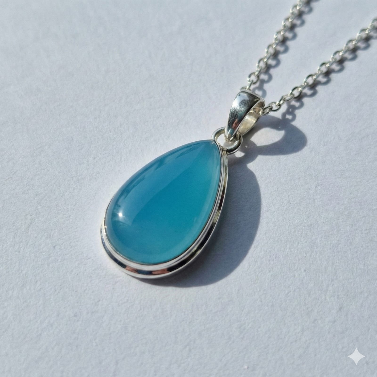 This is a polished Blue Aqeeq (Blue Agate) gemstone shaped in an elegant teardrop cabochon. The stone displays a vivid aqua-blue tone with a smooth, glossy finish, making it a popular choice for modern jewelry designs. Blue Aqeeq is commonly appreciated for its soothing appearance and its association with emotional balance, calmness and clarity.