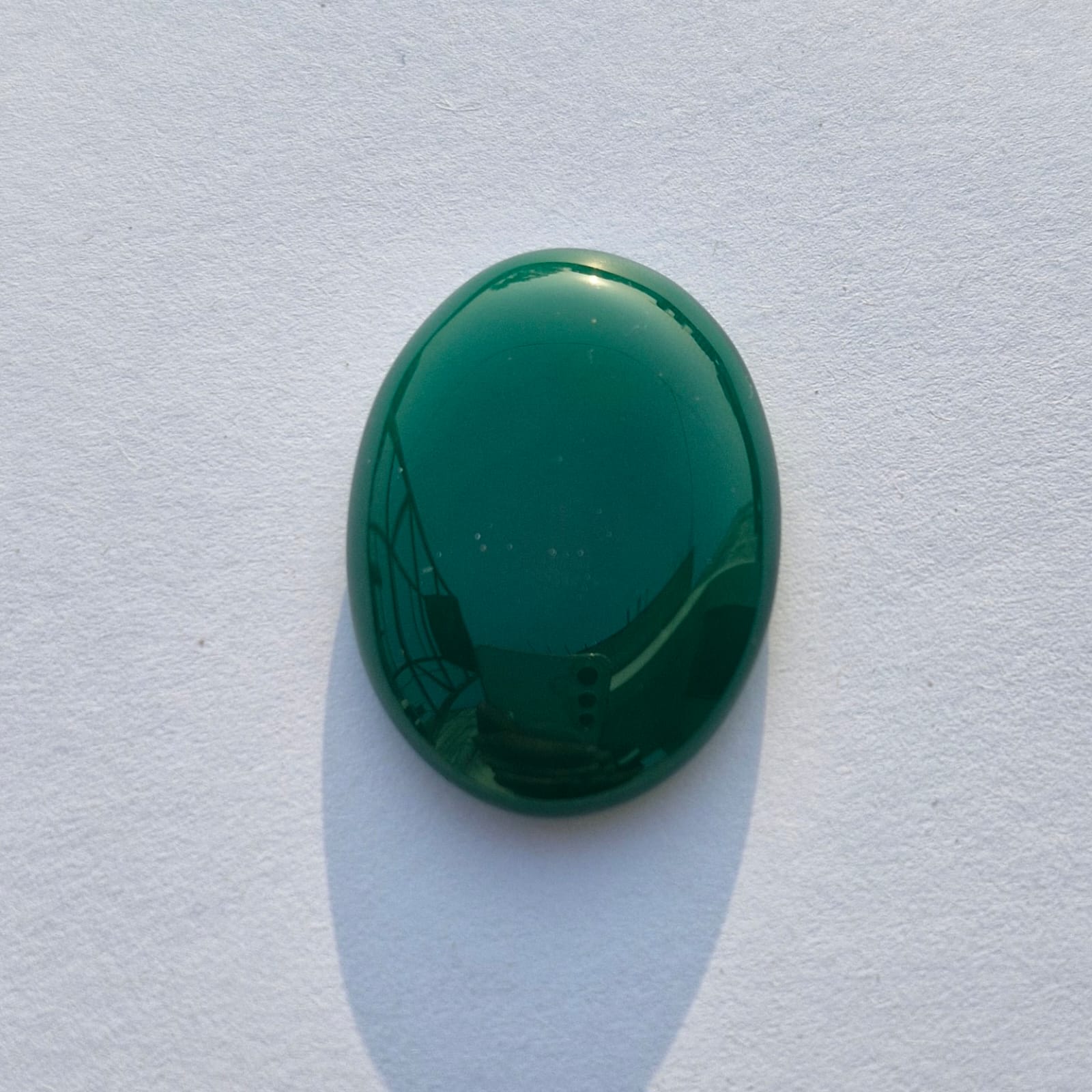 + Free Shipping above 499This gemstone is a polished oval cabochon of Green Aqeeq (Green Agate), featuring a rich, deep green shade with a clean glossy surface. Green Aqeeq is popularly worn in rings, pendants and spiritual accessories due to its elegant look and association with calmness, emotional stability and clarity. The stone’s smooth finish and balanced size make it suitable for both men’s and women’s jewelry designs.