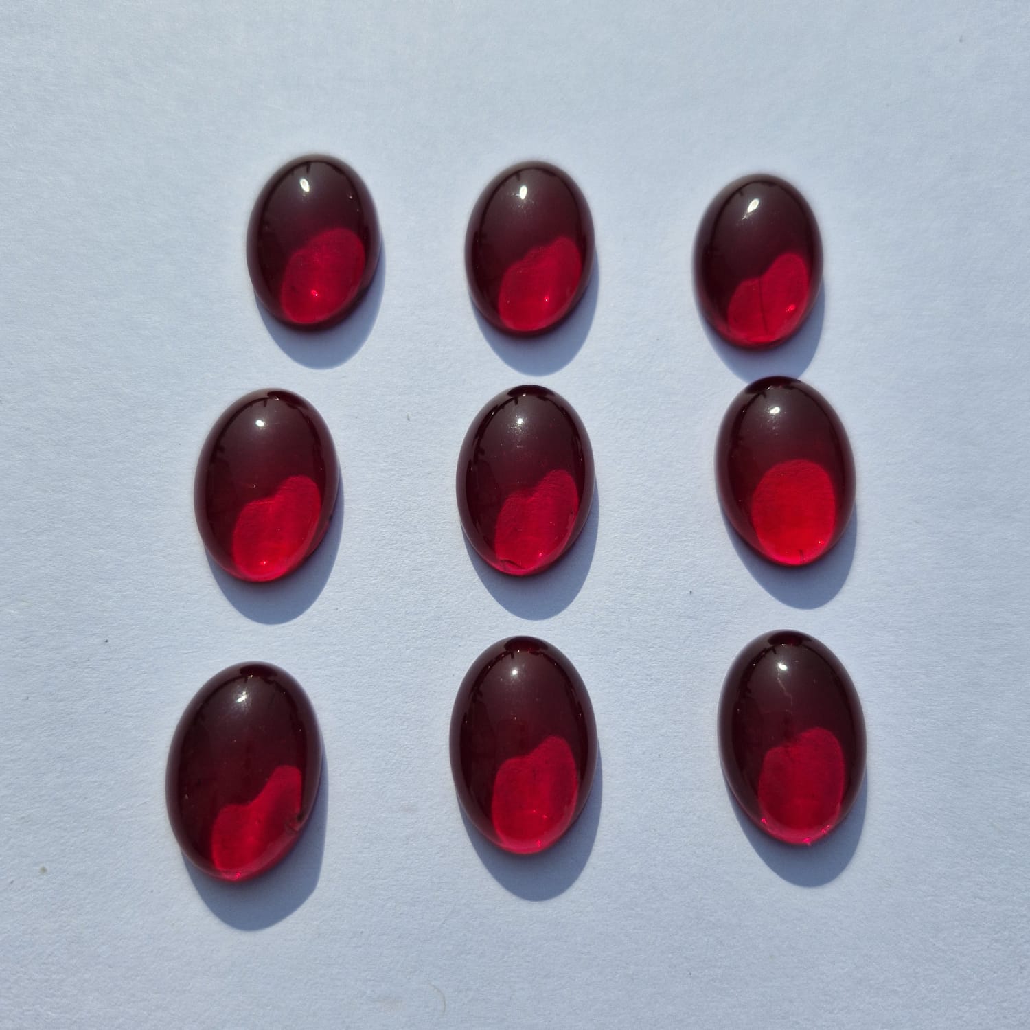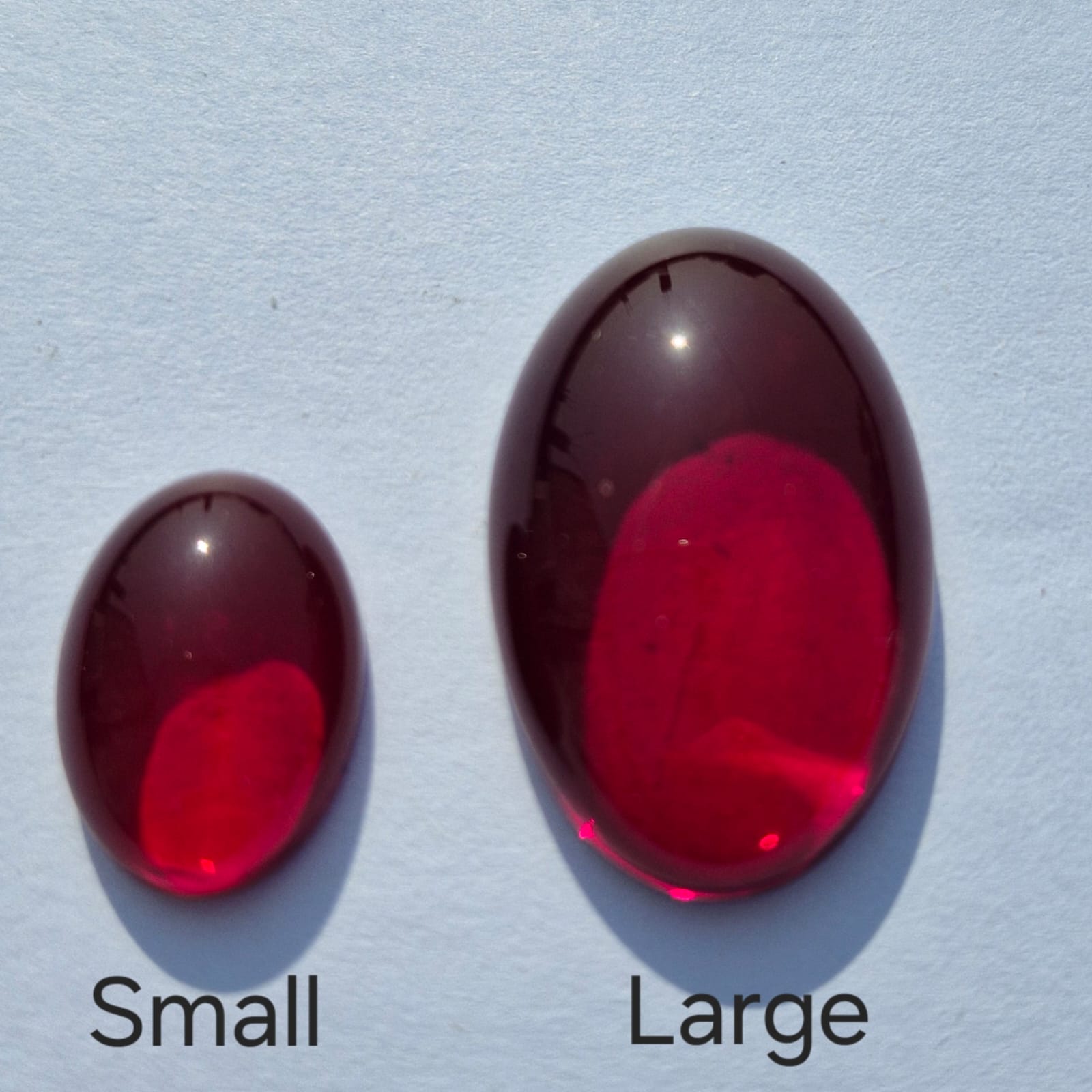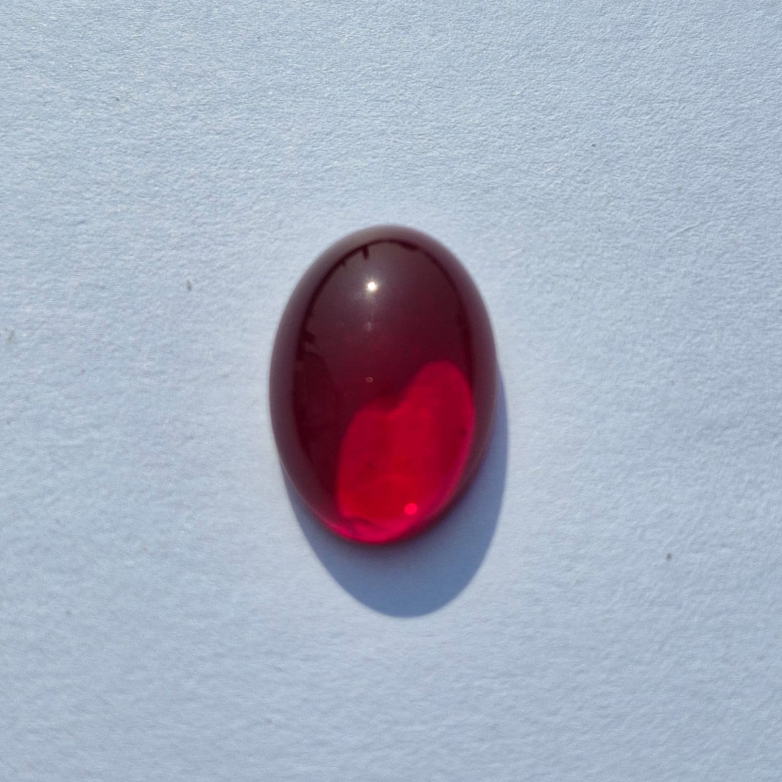 This gemstone resembles the classic beauty of Yaqoot (Ruby) with its rich red hue and glossy cabochon finish. It is a popular choice among jewelry lovers who admire the ruby look without paying high prices. The stone displays a clear transparency and even deep red color, making it perfect for fashionable rings, pendants, and customized jewelry pieces.
